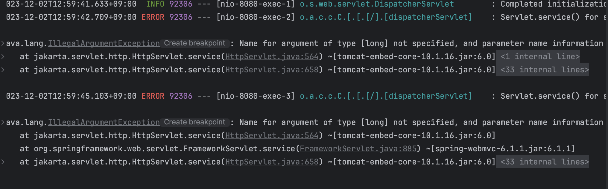 스프링 부트 3.2.0부터 @PathValuable 사용할 때 -parameters 라는 자바 컴파일 옵션을 설정해야 파라미터 이름을 생략할 수 있다