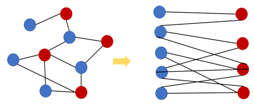 - 그러한 그래프를 특별히 이분 그래프 (Bipartite Graph)