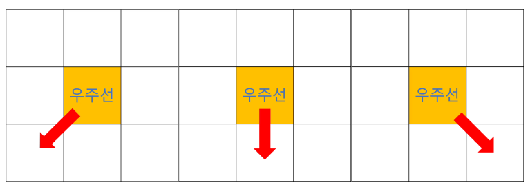 - 우주선 이전에 움직인 방향으로 움직일 수 없다 (같은 방향으로 두번 연속 이동 불가)