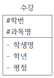 - 2NF (제 2정규형) : 부분함수 종속 제거 (PK가 2개 이상일 때)
