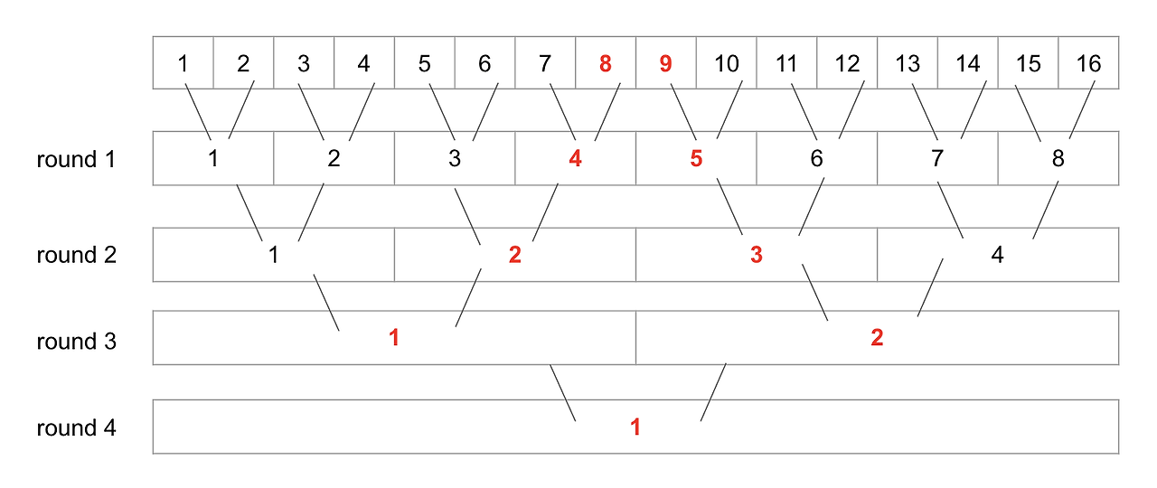 - 라운드의 참가자가 홀수명일 경우, 마지막 번호는 다음 라운드로 자동 진출