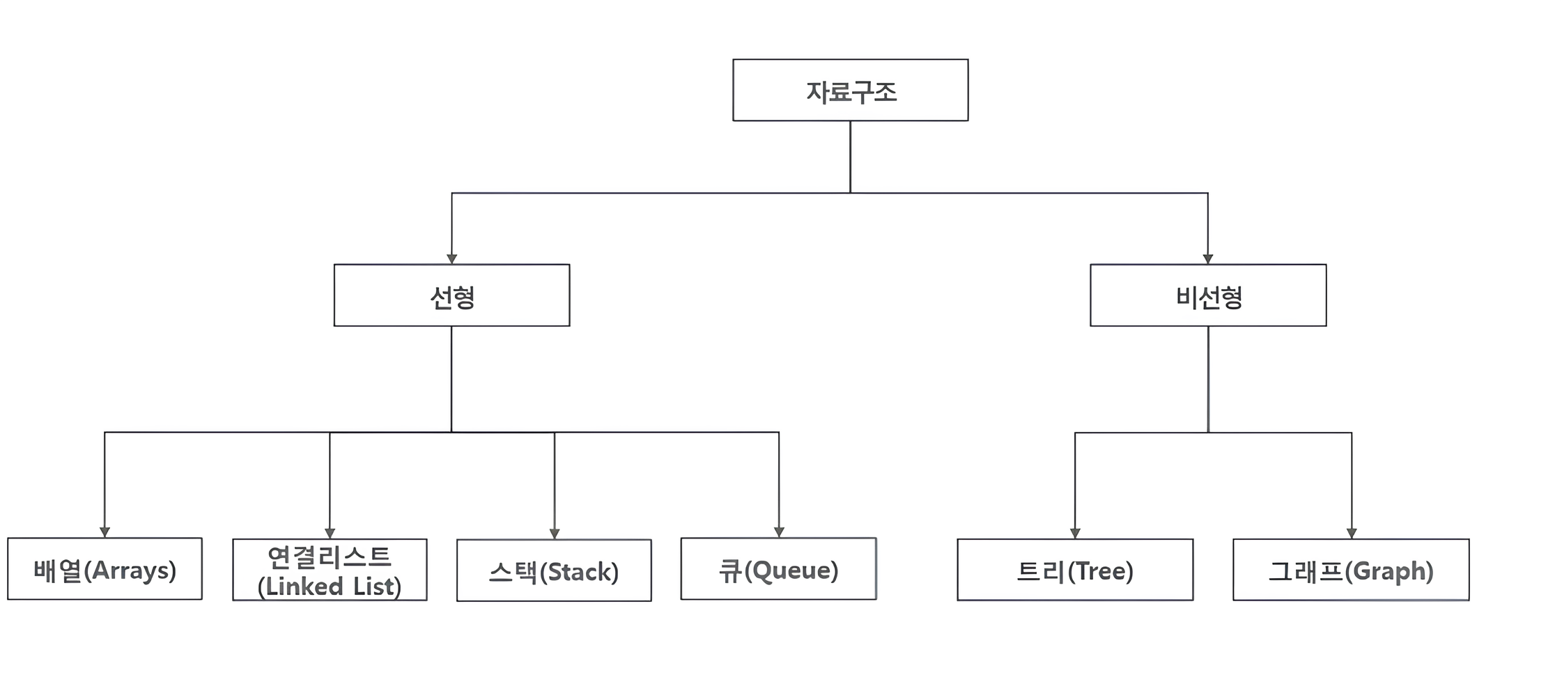 - 개발자가 데이터를 효율적으로 사용할 수 있도록 정리하는 방법으로 선형과 비선형으로 구분할 수 있다