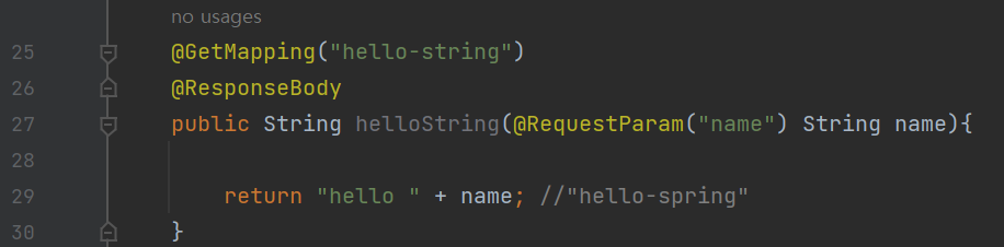 ☞ @GetMapping("hello-string") : localhost:8080/hello-string 일 때 아래 메서드 호출