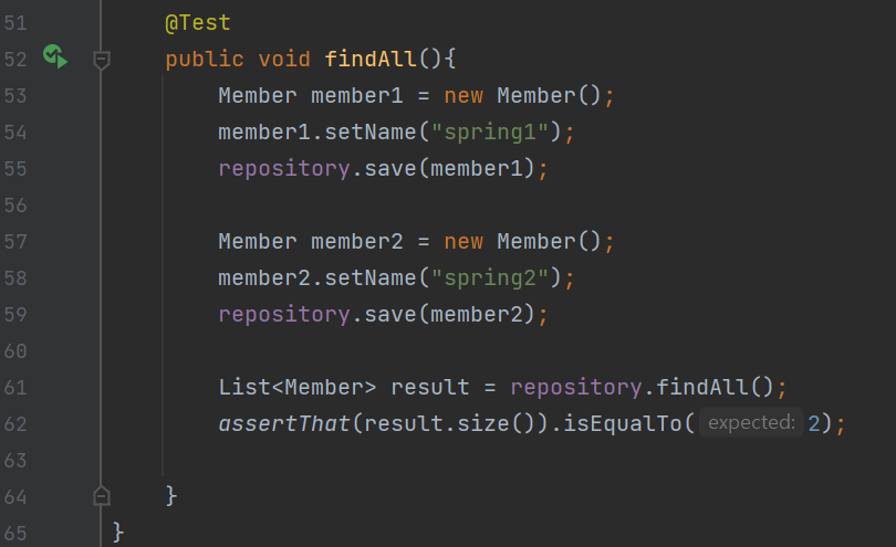 ☞ List<Member> result = repository.findAll() : 검증단계