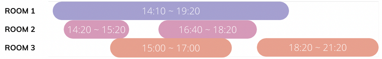 book_time[i] = ["HH:MM", "HH:MM"] = [대실 시작 시각, 대실 종료 시각] 형태