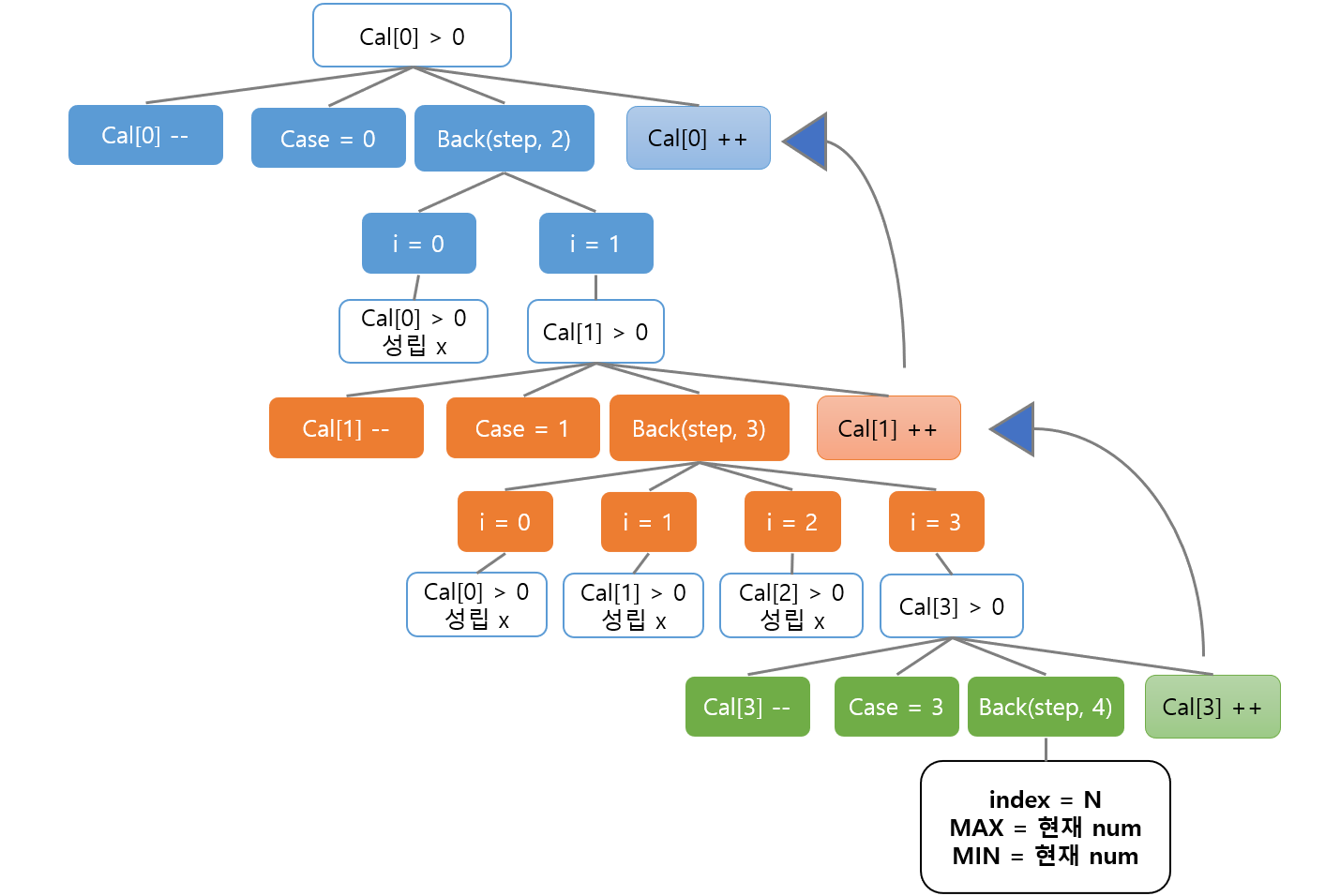 cal[i]++; 백트래킹 과정 모두 끝났을 경우 다른 경우의 수 계산을 위해 연산 배열 ++