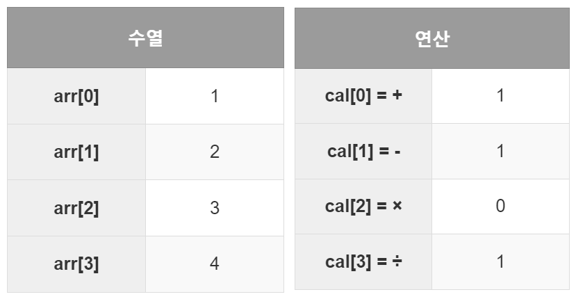 : 연산자 개수 ( +, -, ×, ÷ 순서 )